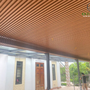 Trần nan gỗ nhựa composite có bề mặt vân gỗ tinh xảo với đa dạng về màu sắc đặc biệt là khả năng chịu ẩm, chịu nước, cho bạn thêm nhiều ý tưởng thiết kế. Mang lại phong cách hoàn toàn mới mẻ và hiện đại trong những không gian quen thuộc.